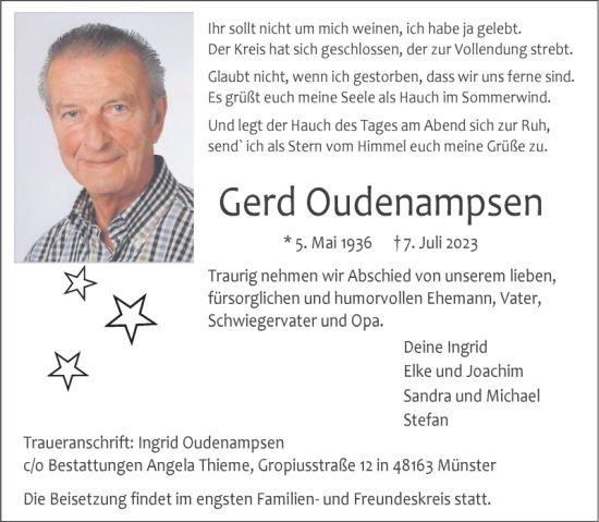 Gerd Johannes Oudenampsen (M.124) overleden